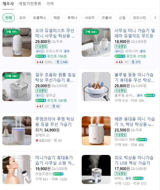 가습기는 조금만 찾아봐도 정말 많은 제품이 있는 만큼