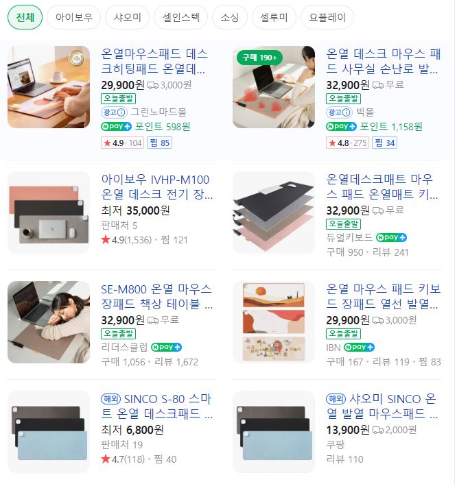 - 2위 : 데스크패드(발열데스크매트)