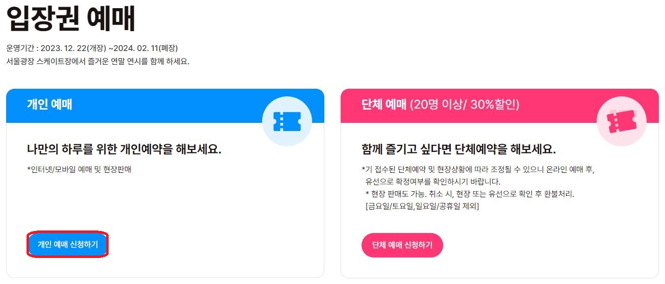 서울광장 스케이트장 예매 방법
