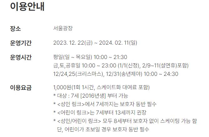 서울광장 스케이트장 운영 기간