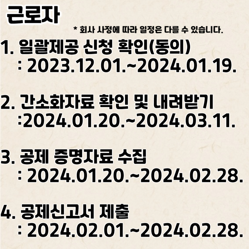 지금까지 2023년 귀속 연말정산의 전체적인 일정을 살펴보았습니다.