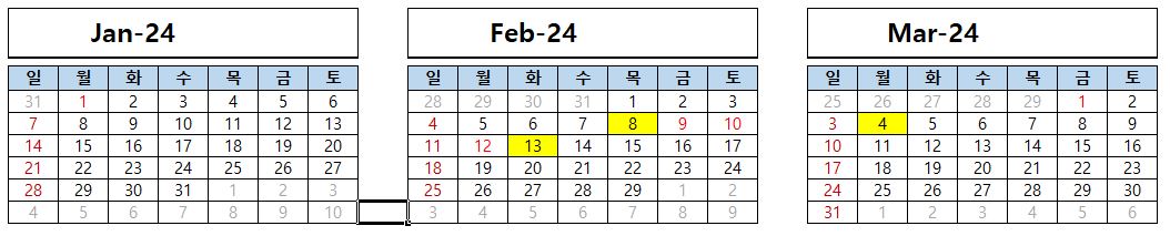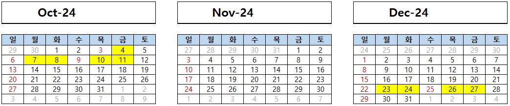 이상으로 2024년 공휴일 일정, 연차 휴가 사용하기 좋은 날을 함께 알아보았습니다.
